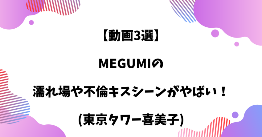 【動画3選】MEGUMIの濡れ場や不倫キスシーンがやばい!(東京タワー喜美子)?
