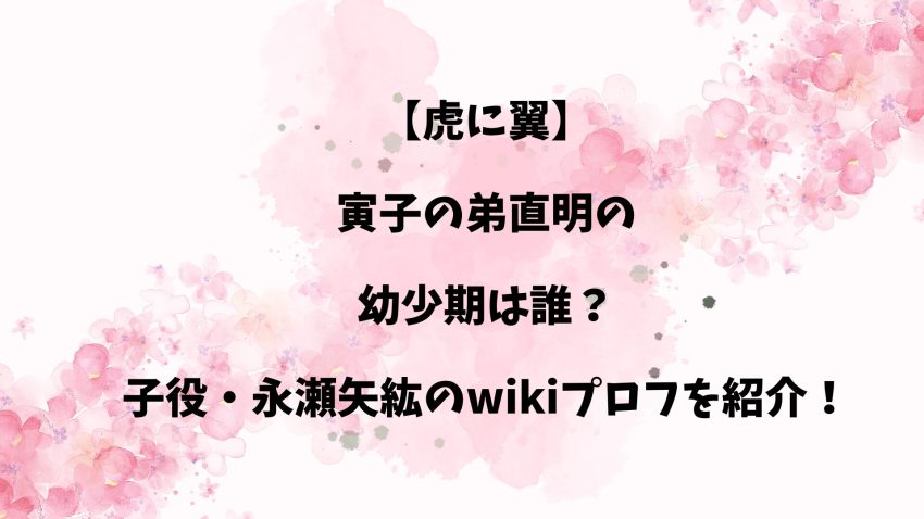 【虎に翼】寅子の弟直明の幼少期は誰?子役永瀬矢紘のwikiプロフを紹介!?