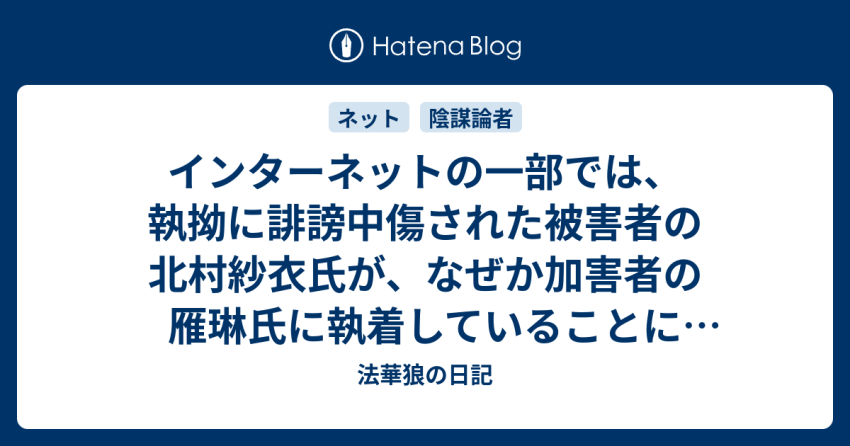 インターネットの一部では、執拗に誹謗中傷された被害者の北村紗衣氏が、なぜか加害者の雁琳氏に執着していることになっている – 法華狼の日記?
