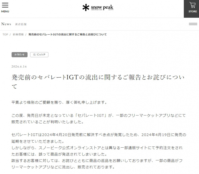 スノーピーク 発売前の商品が流出?