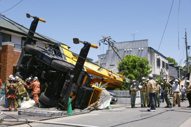 住宅街でクレーン車横転 停電も