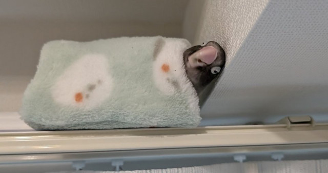何故そこに?くつろぐインコ話題?