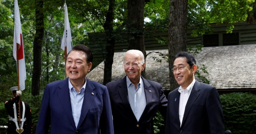 日米韓、協力再確認 首脳会談1年で共同声明 | ロイター?