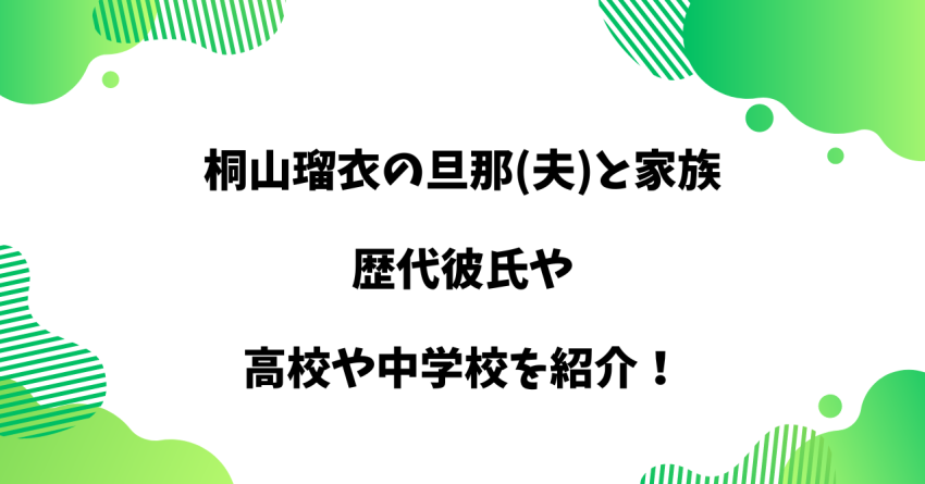桐山瑠衣の旦那(夫)と家族|歴代彼氏や高校や中学校を紹介!?