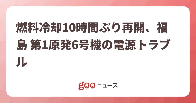 福島原発6号機で燃料冷却再開 東電?