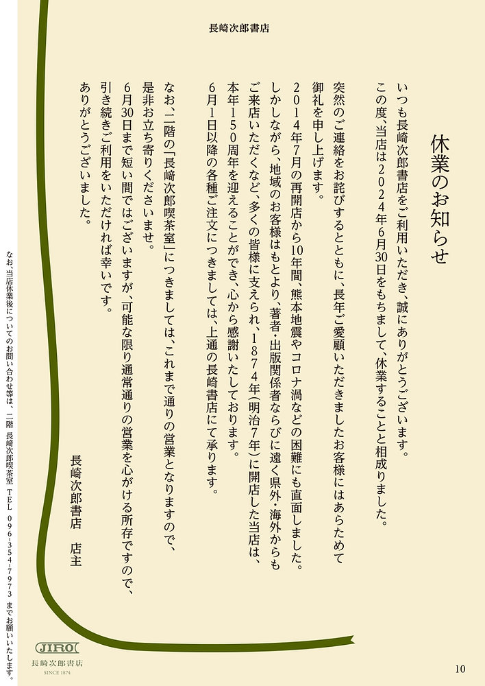 長崎次郎書店 休業のお知らせ?