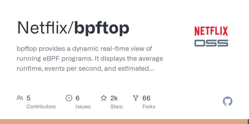Netflix/bpftop: bpftop provides a dynamic real-time view of running eBPF programs. It displays the average runtime, events per second, and estimated total CPU % for each program.?