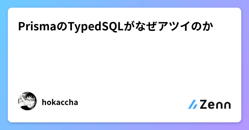 PrismaのTypedSQLがなぜアツイのか? Posted on September 3, 2024 by Pulse PrismaのTypedSQLがなぜアツイのか? [記事タイトル] [記事内容] [記事内容] [記事内容] [記事内容] [記事内容] [記事内容]