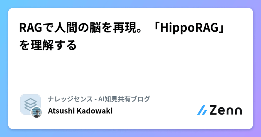 RAGで人間の脳を再現。「HippoRAG」を理解する?